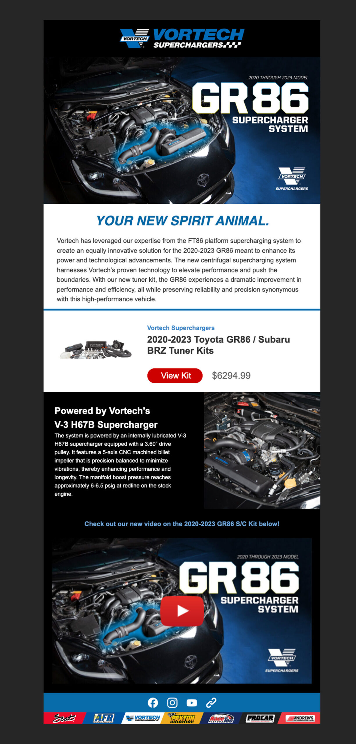 This project was a multi-platform product launch for Vortech Superchargers which aimed to bring awareness to their new supercharger kit available for the popular GR86 platform. I served as the creative lead for this project.